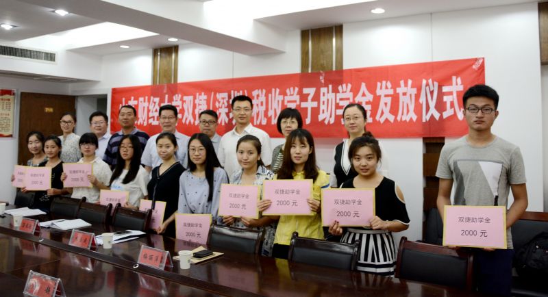 6月29日,山东财经大学双捷(深圳)税收学子助学金发放仪式在舜耕校区举行。校友工作办公室(教育基金会)、学生工作处、财政税务学院负责人及受助学生代表参加了活动。