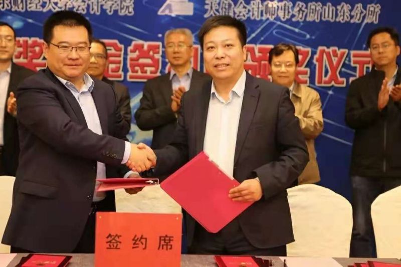 张新介绍了我校近几年的发展成果,山财大成为第四轮教育部公布的学科评估结果中山东省唯一拥有两个B以上经管学科的高等院校,整体学科实力进入全国财经院校前十名等。他表示,成绩的获得,离不开全校师生的共同努力,也离不开社会各界的支持,期待双方加强合作,发挥各自优势,为国家社会发展培养更多优秀的人才。王国海介绍了天健会计师事务所的基本情况,指出事务所秉持服务社会理念,一直热心支持高等教育发展、关心行业人才培养,并从个人规划、就业观、工作观、生活观等方面向学生提出了宝贵的建议。